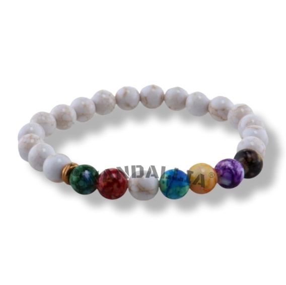 Bransoletka z syntetycznych Koralików imitujących Naturalne Kamienie Biały Howlit oraz syntetycznych kolorowych Minerałów.