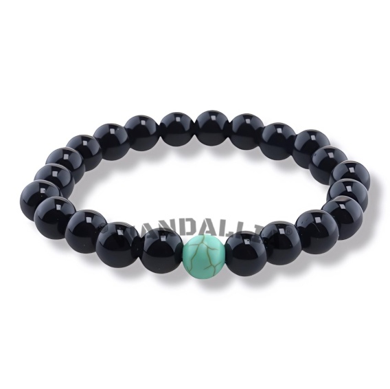 WANDALLIA Bransoletka z Syntetycznych Koralików Imitacja Czarny Turmalin BRN-KRL-36