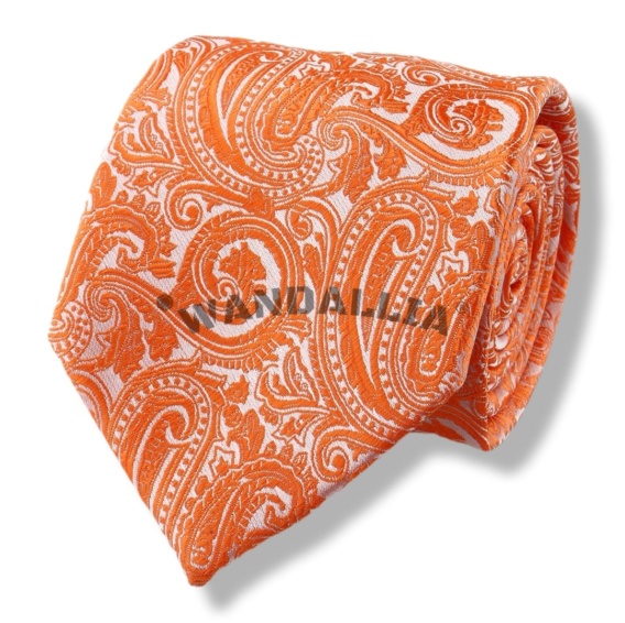 Klasyczny Krawat Męski w kolorze Pomarańczowym (Oranż) z haftowanym wzorem.