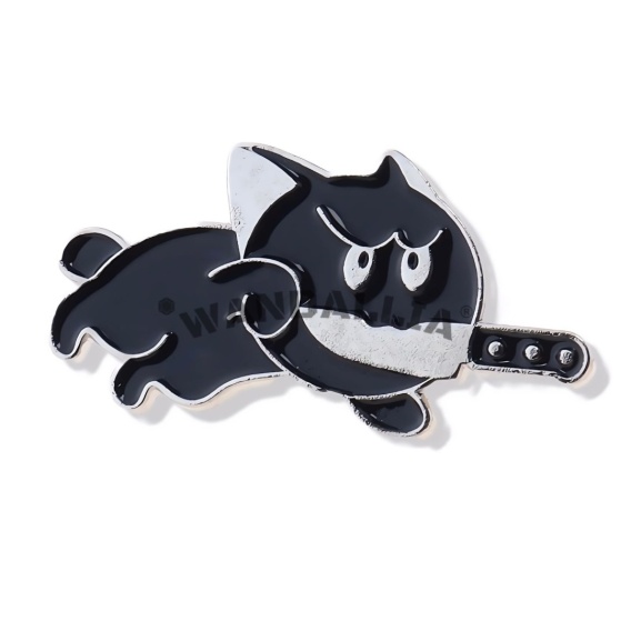 WANDALLIA Pin Przypinka Czarny Kot Ninja z Nożem Assassin Emaliowana